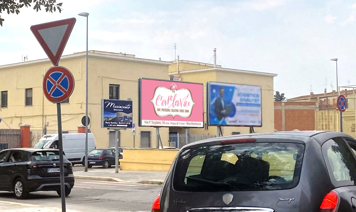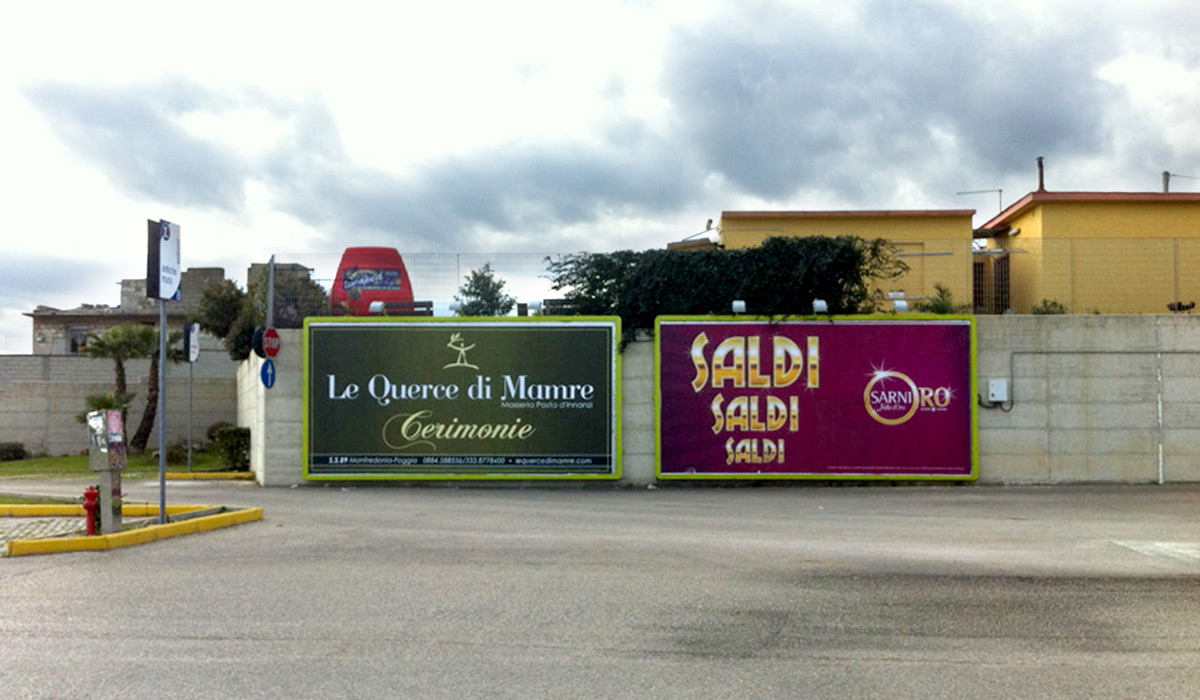 Filter CategoriesTuttiManfredoniaMonte S. Angelo 01. Piazza Marconi 01. Piazza Marconi Piazza Guglielmo Marconi 02. Piazzale dei Caduti 02. Piazzale dei Caduti Piazzale dei Caduti 03. Via Gargano 03. Via Gargano Via Gargano 04. Viale delle More 04. Viale delle More Via delle More 05. Piazza Sant'Andrea 05. Piazza Sant'Andrea Viale Kennedy (Fronte Porto Turistico) 06. Viale della Transumanza 06. Viale della Transumanza Lato San Giovanni Rotondo 07. Viale della Transumanza 07. Viale della Transumanza Lato Manfredonia 08. Centro Comm. Gargano 08. Centro Comm. Gargano Impianto a Parete (illuminato) 09. Centro Comm. Gargano 09. Centro Comm. Gargano Impianto su Pali (illuminato) 10. Piazzale dei Caduti 2 10. Piazzale dei Caduti 2 Piazzale dei Caduti 2 11. Piazzale dei Caduti 3 11. Piazzale dei Caduti 3 Piazzale dei Caduti 3 12. Viale Aldo Moro 12. Viale Aldo Moro Viale Aldo Moro 13. Viale Kennedy 13. Viale Kennedy Fronte Ingresso Dogana 14. Via Scaloria 14. Via Scaloria Via Scaloria (nei pressi dell’acquedotto) Impianto N.1 Impianto N.1 Via Panoramica Sud (incrocio ingresso Monte) Impianto N.2 Impianto N.2 Via Manfredi – Fronte Posta Impianto N.3 Impianto N.3 Via Manfredi Impianto N.4 Impianto N.4 Panoramica Sud (ingr. Parco Naz. Gargano)